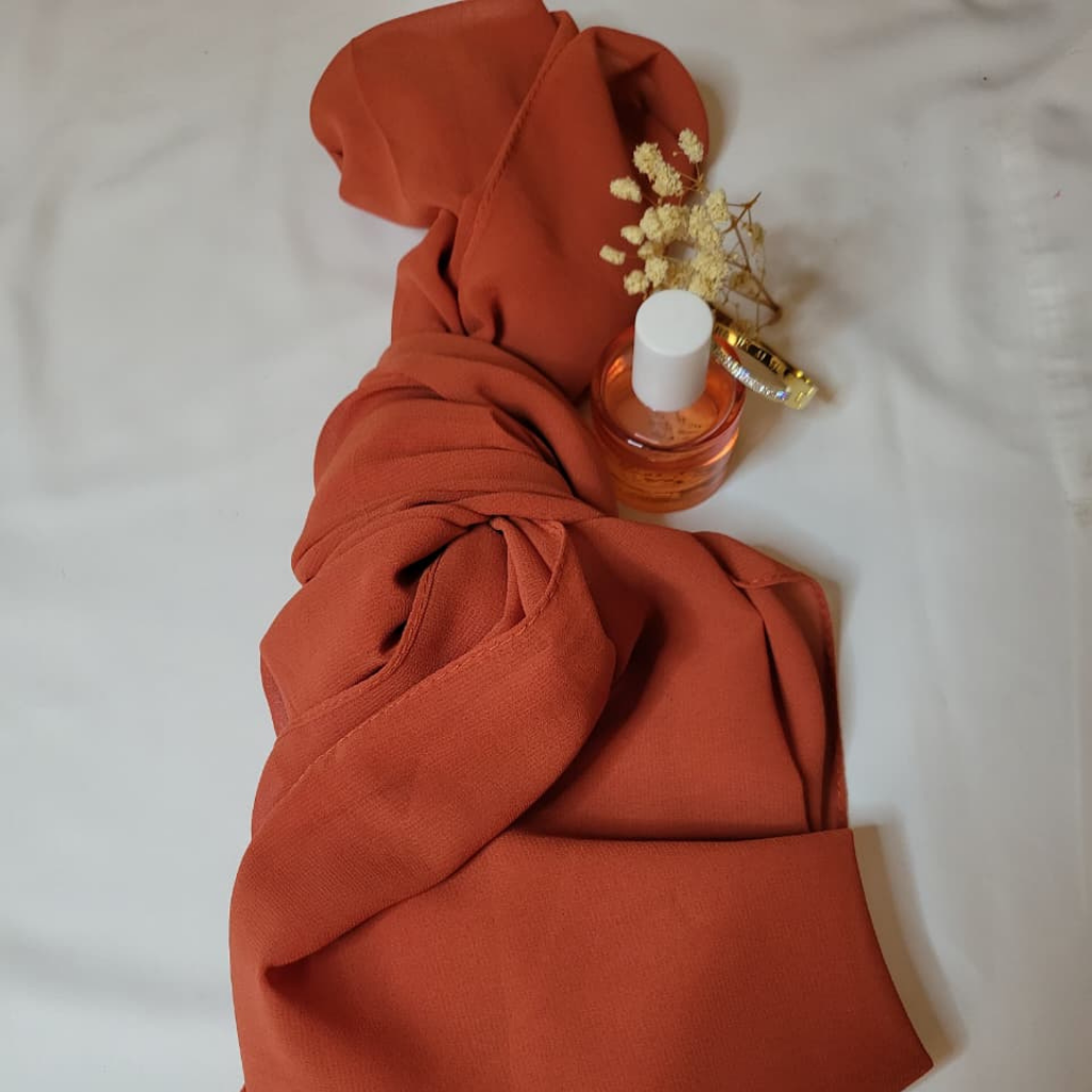 A timeless rust shade crafted in airy chiffon, perfect for effortless drape and all day comfort.Elegance meets versatility style it for work, casual outings, or festive evenings